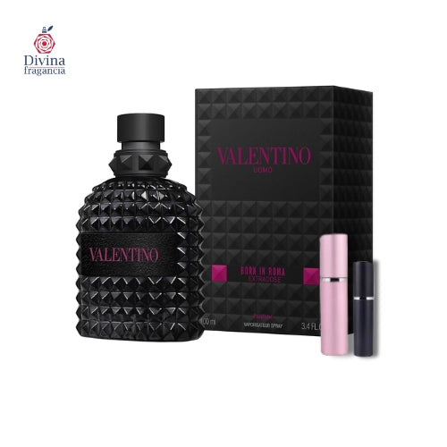 Born in Roma Uomo Extradose de Valentino es una fragancia masculina que amplifica el estilo audaz de la colección Born in Roma con una dosis extra de carácter y elegancia. La apertura combina una mezcla de especias vibrantes con la chispa de cítricos frescos como bergamota y mandarina. En el corazón, una lavanda (“wild lavender”) intensa aporta un tono herbáceo-sofisticado, mientras que la base se centra en vetiver pulido junto con maderas profundas, dotando la estela de calidez, estructura y presencia.