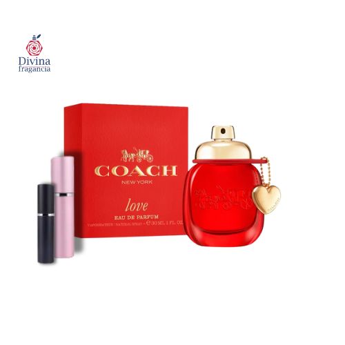 Es una fragancia de la familia olfativa Floral Frutal para Mujeres. Coach Love Eau de Parfum se lanzó en 2023. La Nota de Salida es fresa salvaje; la Nota de Corazón es rosa roja; la Nota de Fondo es cedro.