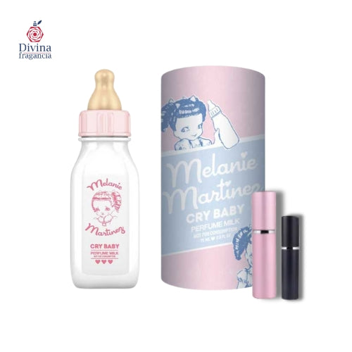 Cry Baby Perfume Milk es una fragancia femenina, de marca diseñador inspirada en la estética y narrativa del álbum Cry Baby de Melanie Martinez, y creada por la perfumista Catherine Selig. Pertenece a la familia olfativa oriental-vainilla / floral-gourmand, con una mezcla dulce, cremosa y juguetona ideal para quienes buscan una firma fresca pero con carácter.