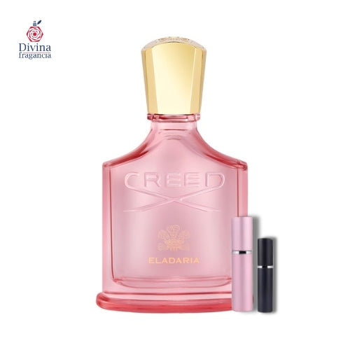 Eladaria de Creed es un perfume unisex que celebra la trilogía de rosas envuelta en luz de amanecer. Abre con mandarina brillante, bergamota y un toque de pimienta rosa, que aportan frescura y chispa. En el corazón florecen rosas centifolia, damascena junto a peonía y lirio del valle, generando una paleta floral elegante y suave. El fondo combina cashmere wood, vainilla y musgo con almizcle, ofreciendo una base cálida, aterciopelada y envolvente.