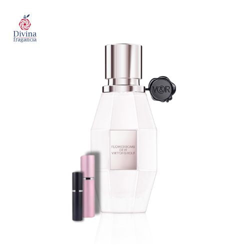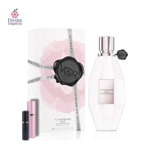 Fragancia de la familia olfativa Floral para Mujeres. Flowerbomb Dew se lanzó en 2020. Las Notas de Salida son almizcle ambreta, pera, Gota del rocío y bergamota; las Notas de Corazón son iris y rosa; las Notas de Fondo son almizcle blanco, cachemira y heliotropo