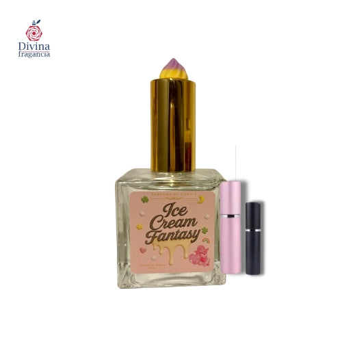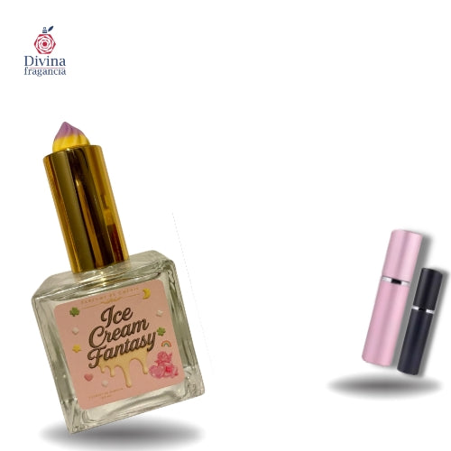 Ice Cream Fantasy de Parfums by Chérie es un perfume unisex recién lanzado que convierte el capricho en arte. Esta fragancia comienza con helado de vainilla fría cayendo lentamente sobre la piel, evocando la frescura cremosa de un postre favorito. El corazón revela malvaviscos blancos suaves que se derriten como recuerdos de infancia, mientras que el polvo dulce y ligero deja una estela empolvada, adictiva y juguetona. Ideal para quienes buscan una experiencia olfativa dulce, elegante y nostálgica que despierte sonrisas.