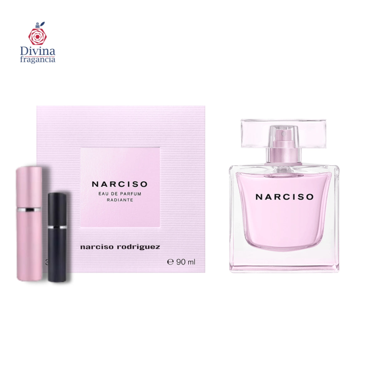 Narciso Radiante de Narciso Rodriguez es una fragancia femenina, de marca diseñador, perteneciente a la familia olfativa floral-almizclada, con intensidad media y duración media-larga. Esta creación moderna y radiante celebra una feminidad suave y luminosa, evocando una sensación de calma y magnetismo desde el primer instante.