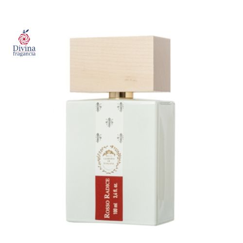 Rosso Radice se caracteriza por un inicio con una nota muy fresca que realza su personalidad: bergamota de Calabria, continuando con vetiver, musgo de roble y cumarina, a las que se añaden notas de ambrettolide y ambroxan, que le aportan redondez, calidez y un fuerte poder fijador. Todo envuelto en Muscenone con un olor fuerte, cálido y limpio, con un suave pero potente trasfondo de sensualidad, casi erótica, y animalidad. La molécula Iso y Super es importante y da una sensación aterciopelada y ámbar.
